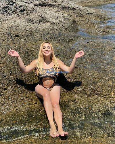 Rubia bella y esbelta latina en la isla